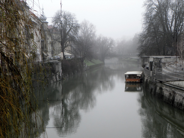 | Dezember 2013: Fluss Ljubljanica im Nebel in Ljubljana | |||||