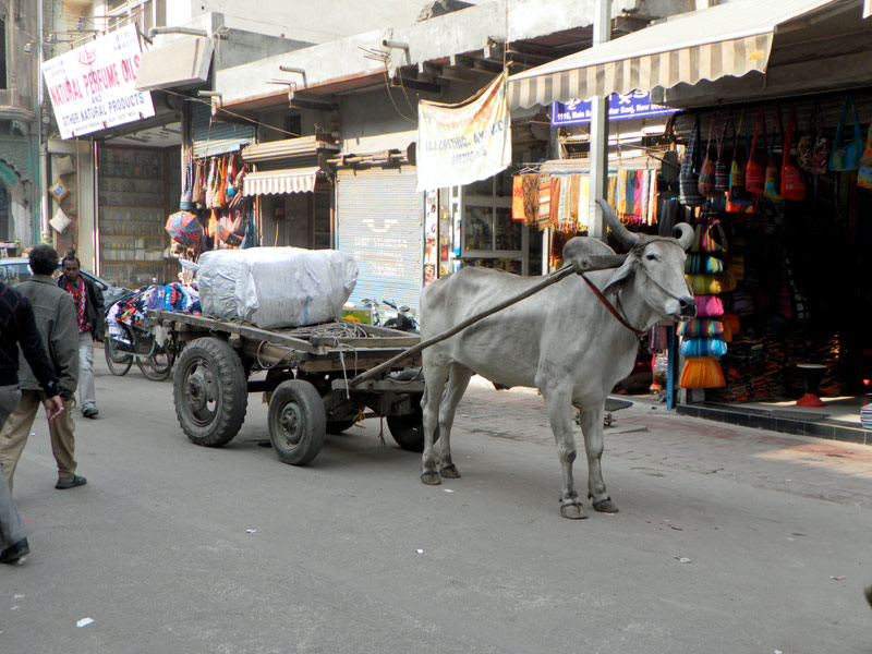 14.12.2011 - Indien - In der Hauptstadt Delhi unweit vom Main Baazar werden die Waren noch altmodisch transportiert...