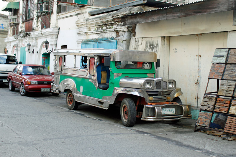 02.01.2016 - Philippinen - Vigan (Luzon) ganz im Norden - Alter Jeepney vor alten Häusern