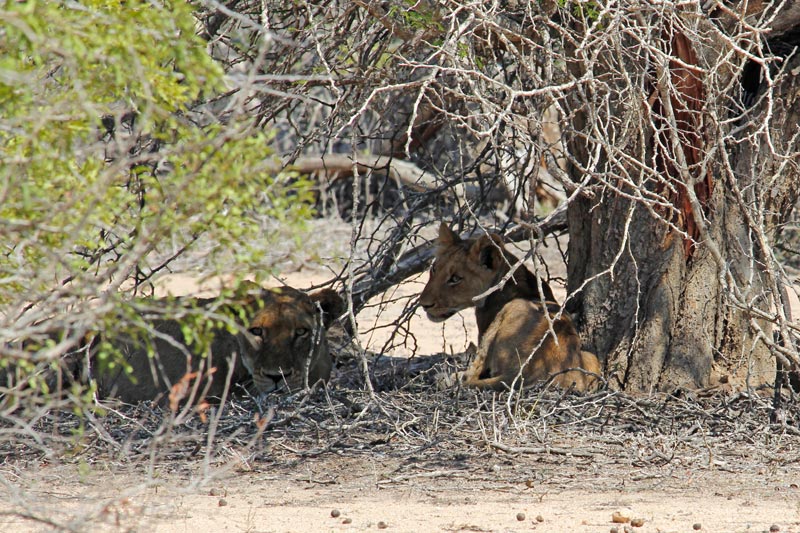 30.11.2016 - Südafrika - Tagessafari im Krügerpark bei knapp 40 Grad Celsius: Junge Löwen im Schatten