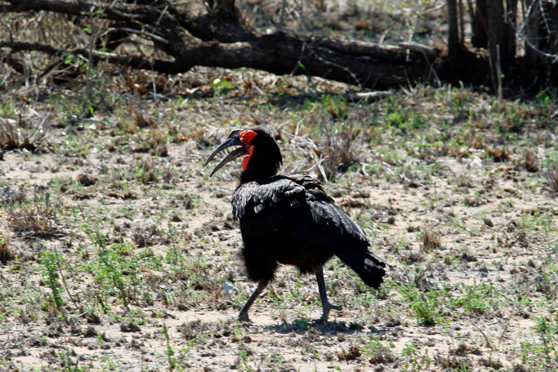 30.11.2016 - Südafrika - Tagessafari im Krügerpark bei knapp 40 Grad Celsius: Rotwangenhornrabe (souther ground hornbill)