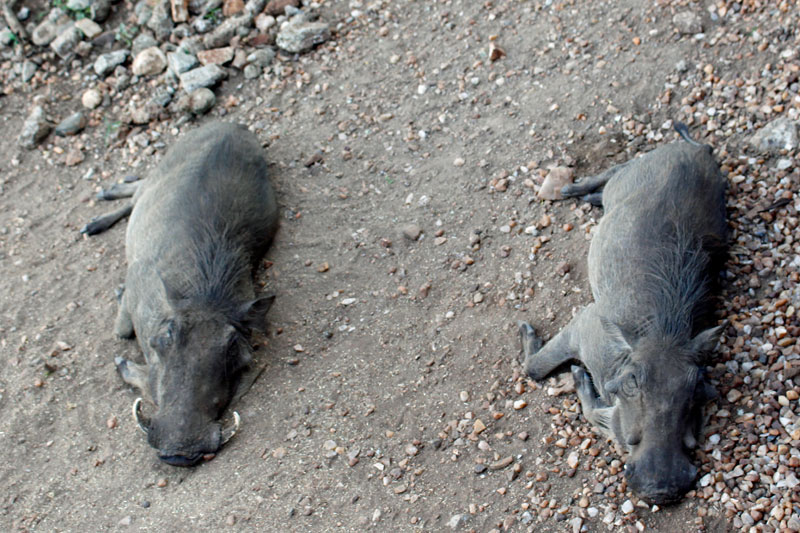 30.11.2016 - Südafrika - Raptor Retreat Lodge in Hoedspruit bei Keith und Sharmaine - Warzenschweine ganz ausgeruht in der Lodge
