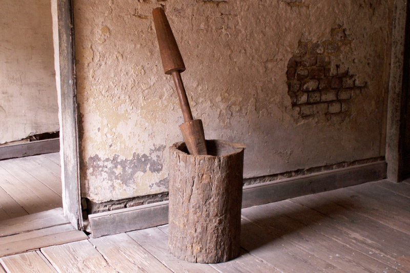 08.04.2006 - Vereinigten Staaten - Arbeitsaufenthalt in South Carolina im Frühjahr - Aiken-Rhett-House in Charleston - Getreidemörser in der ehemaligen Sklavenküche