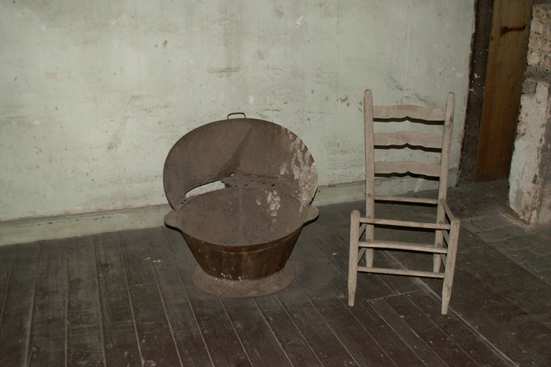 08.04.2006 - Vereinigten Staaten - Arbeitsaufenthalt in South Carolina im Frühjahr - Aiken-Rhett-House in Charleston - Stuhlgerippe und Waschschüssel in der ehemaligen Sklavenküche