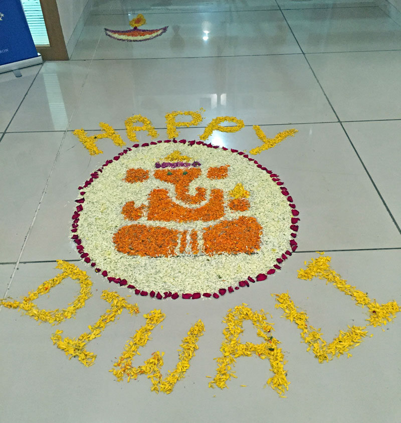 05.11.2015 - Indien - In Ghansoli in Navi Mumbai bei meinem Kunden - Blumenteppich zum Diwali Fest