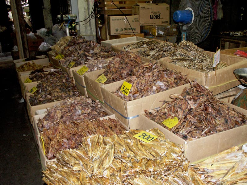 12.12.2009 - Thailand - Asienurlaub - Stadttour in Bangkok - Gut versteckt ein Lebensmittelmarkt mit getrockneten Fischen