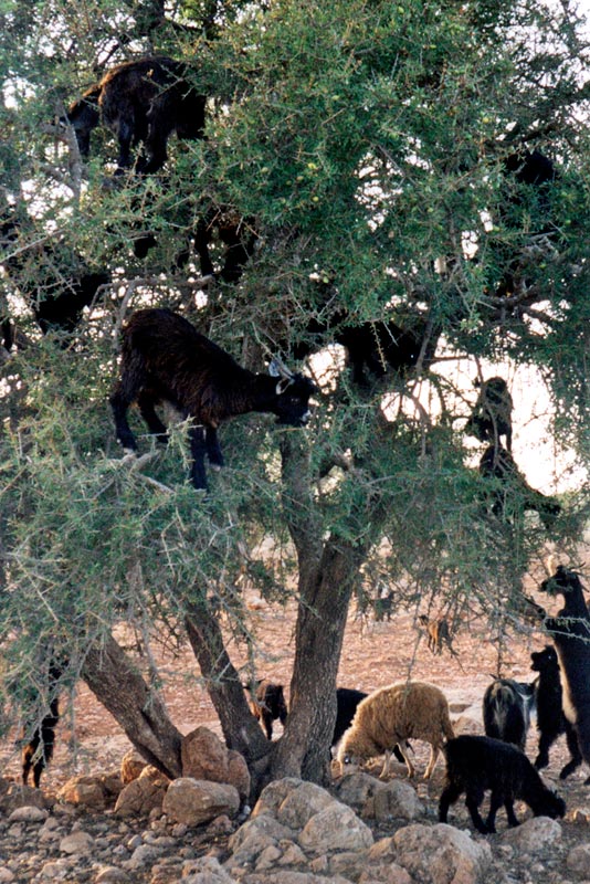 19.11.1998 - Marokko - Kurzurlaub in Marokko - kurz vor Agadir - Kletterwütige Ziegen auf dornigen Eisenholzbäumen