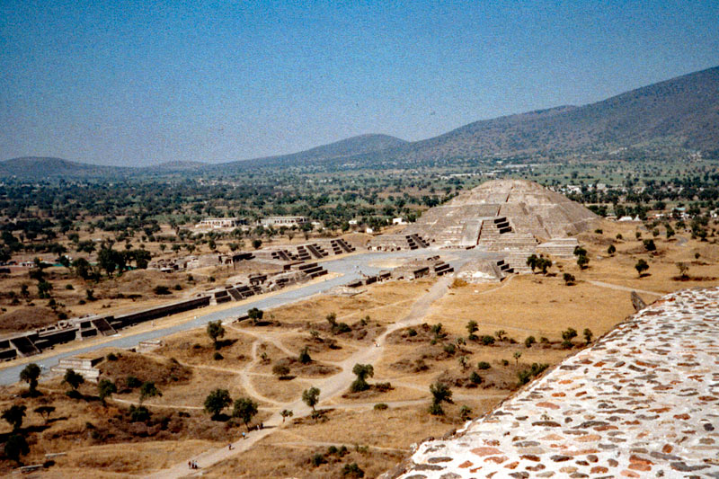 15.12.1995 - Mexiko - In Teotihuacán (etwa 45 Kilometer von Mexiko Stadt entfernt) - Auf der Sonnenpyramide (Pirámide del Sol) mit guter Sicht zur Mondpyramide (Pirámide la Luna)