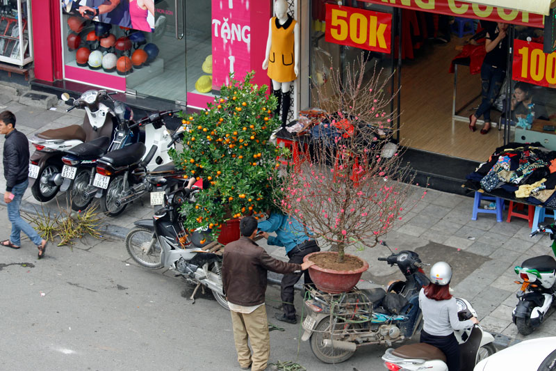 16.02.2015 - Vietnam - Start im Norden von Vietnam - Hanoi: Tet-Fest - Bäume werden transportiert