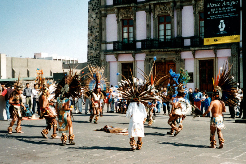 16.12.1995 - Mexiko - In der Hauptstadt Mexiko Stadt (Ciudad México) - In der Nähe des Zócalo Tanzvorführung (Nachfahren der Azteken?)