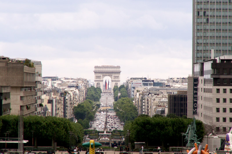 03.08.2008 - Frankreich - Arbeitsaufenthalt in Paris - La Defense, ein modernes Geschäftsviertel - Blick von der La Grande Arche mit Blick auf den Triumphbogen