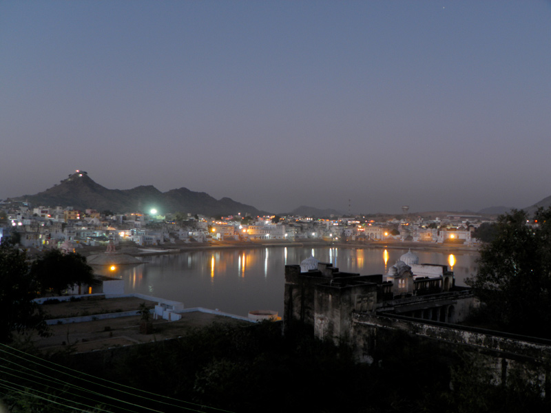 20.12.2011 - Indien - Auf unserer Tour durch Rajasthan mit Anwar - in Pushkar: Pushkar und der See von Pushkar beim Nacht