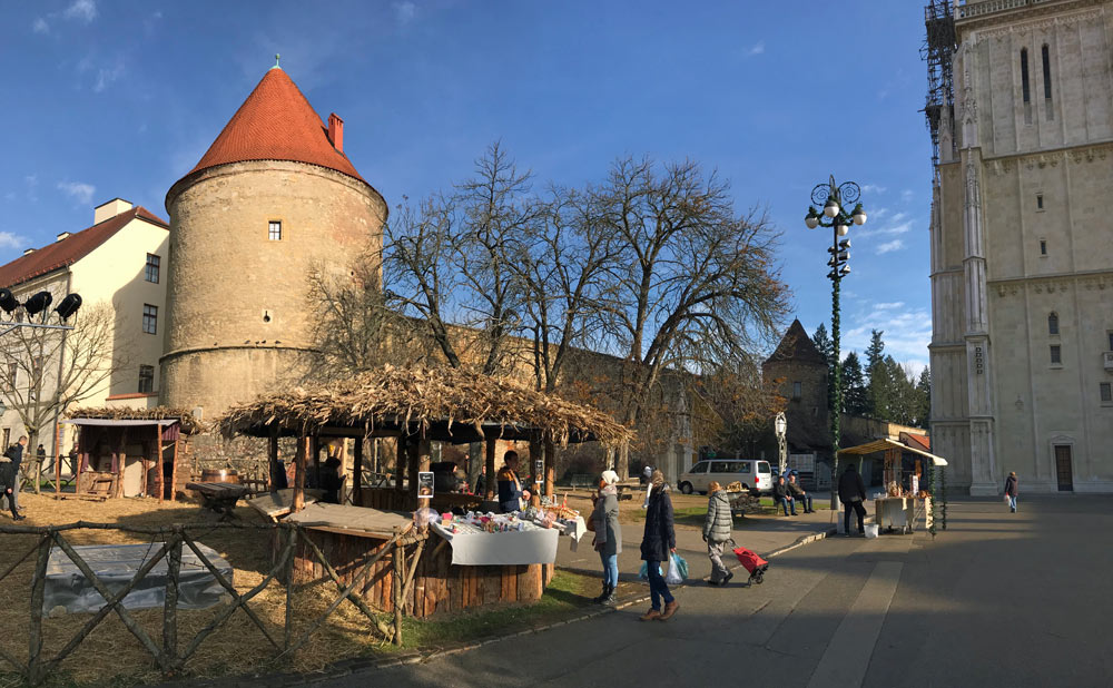 23.12.2018 - Kroatien - Stadtmauer von Zagreb mit einem imposanten Turm gleich neben der Kathedrale