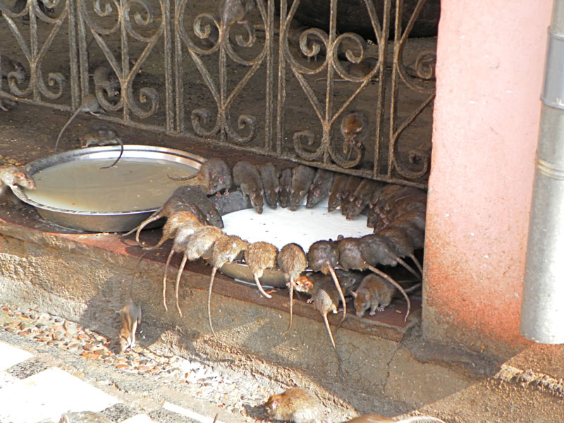 22.12.2011 - Indien - Auf unserer Tour durch Rajasthan mit Anwar - Ratten im Karni-Mata-Tempel (Rattentempel) - ich war drinnen, ohne Schuhe!