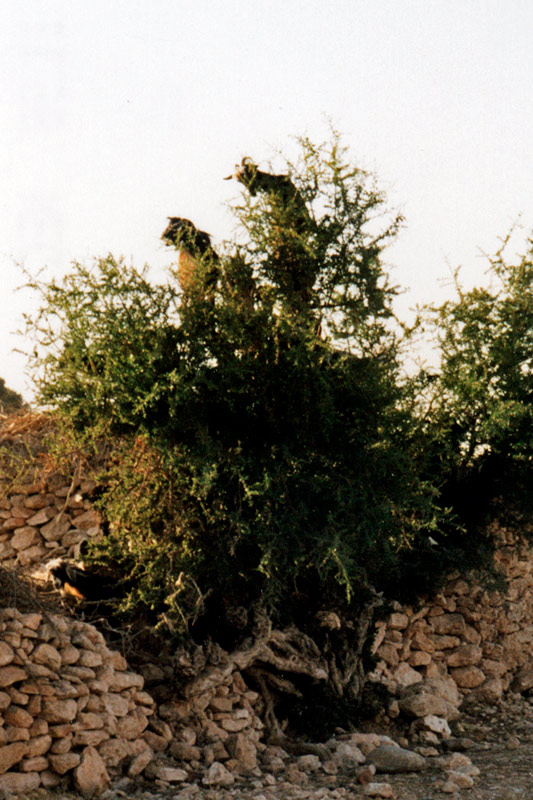 22.11.1998 - Marokko - Kurzurlaub in Marokko - kurz vor Agadir - schon wieder gibt es kletterwütige Ziegen auf dornigen Eisenholzbäumen