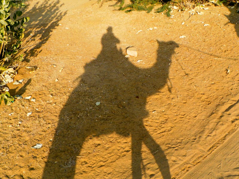 24.12.2011 - Indien - Auf unserer Tour durch Rajasthan mit Anwar - Abstecher in die Wüste Thar: Camel Safari - Schatten meines Dromedars samt mir