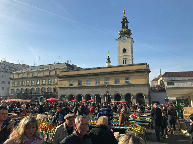 23.12.2018 - Kroatien - Gut besuchter Lebensmittelmarkt in Zagreb am Sonntag vor Heiligabend - und das bei Sonnenschein