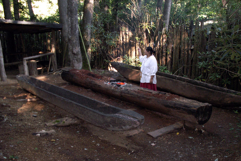 16.09.2006 - Vereinigten Staaten - Arbeitsaufenthalt in South Carolina im Herbst - Kanubau mittels Feuer im Cherokee Reservat im Dorf Oconaluftee
