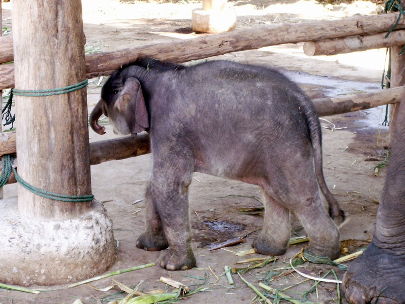 25.12.2009 - Thailand - Asienurlaub - Ausflug nach Chiang Mai im Norden - Elefanten Camp - sehr junges und kleines Elefanten-Baby