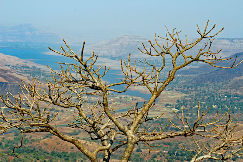 12.03.2016 - Indien - Ausflug Mahabaleshwar - Blick vom Elephants Head Point auf den Dhom Lake (Old Mahabaleshwar)