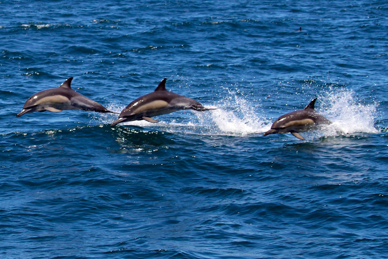 26.11.2016 - Südafrika - Southern Right Charters in Hermanus - Hier tummelten sich Delphine, Robben und Wale: auf dem Bild drei Delphine