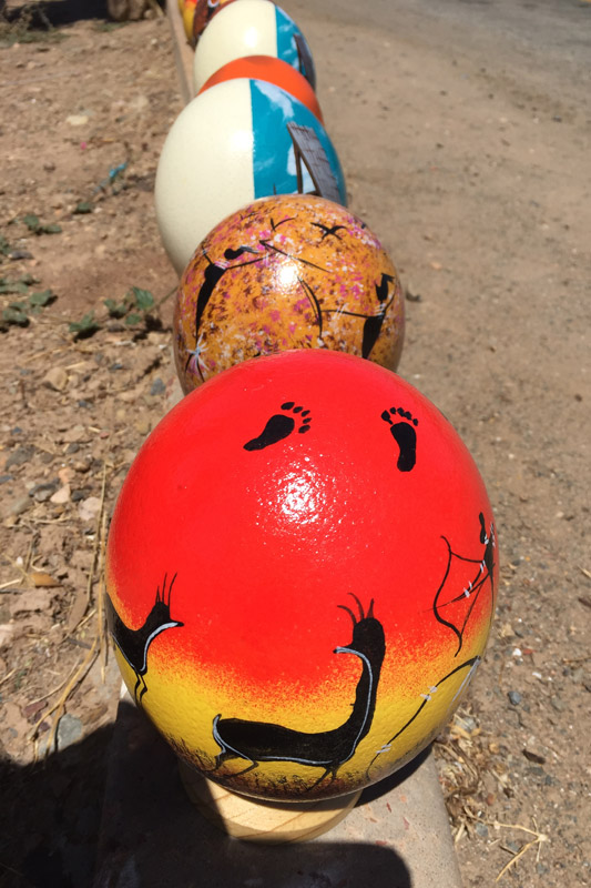 27.11.2016 - Südafrika - In Oudtshoorn am Straßenrand Straußeneier zum fairen Preis - hier die bemalten Eier