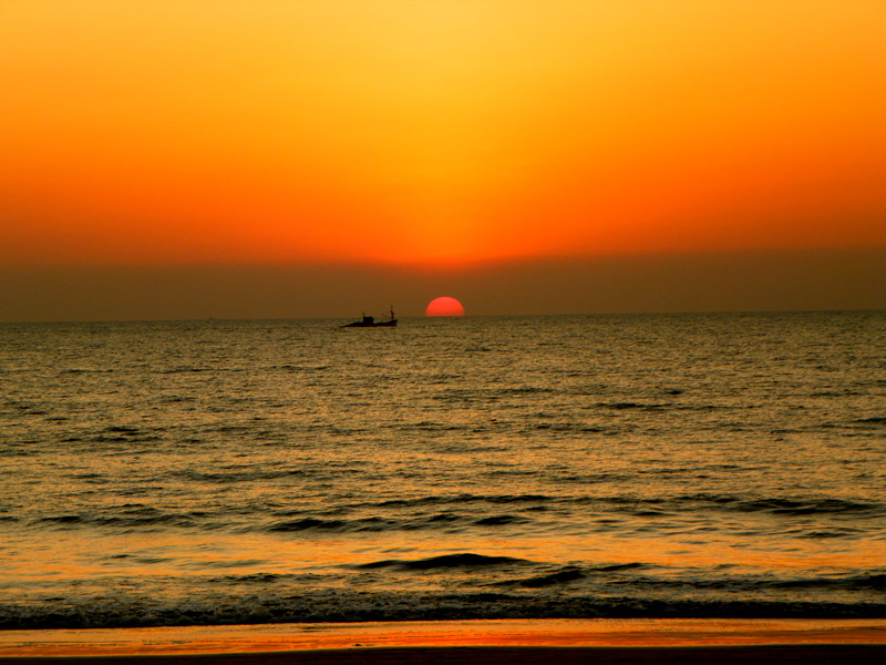 09.01.2012 - Indien - Erholung in Goa - herrlicher Sonnenuntergang in Agonda am Meer mit Schiff am Horizont (schon wieder)