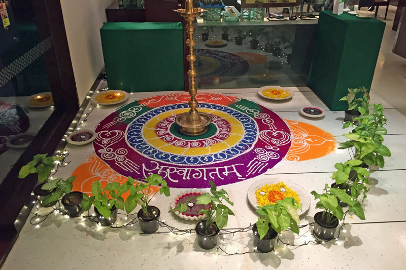26.08.2016 - Indien - Vashi in Navi Mumbai - Blütenornamente (Rangoli) im Hotel FourPoints