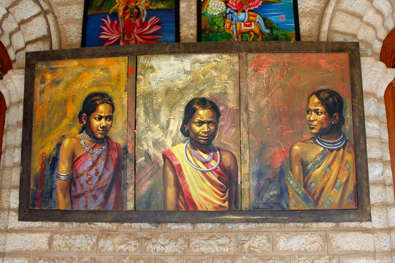 24.09.2016 - Indien - In Bangalore der beeindruckende Bangalore Palast - im Inneren ein Gemälde mit indischen Schönheiten