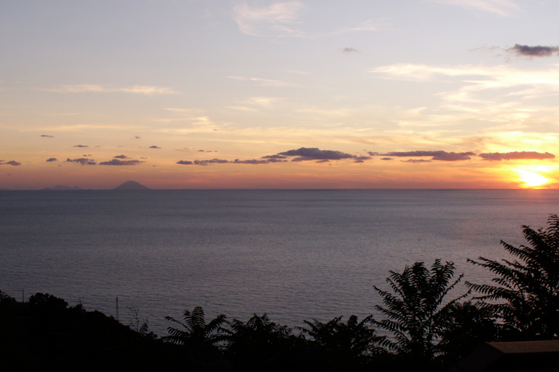 17.09.2008 - Italien - Sommerurlaub in Kalabrien 2008 - Sonnenuntergang über dem Meer von Amantea von unserer Terrasse aus gesehen (mit Vulkan Stromboli im Hintergrund: etwa 100 km entfernt von Kalabrien und dennoch so klar im Sonnenuntergang)