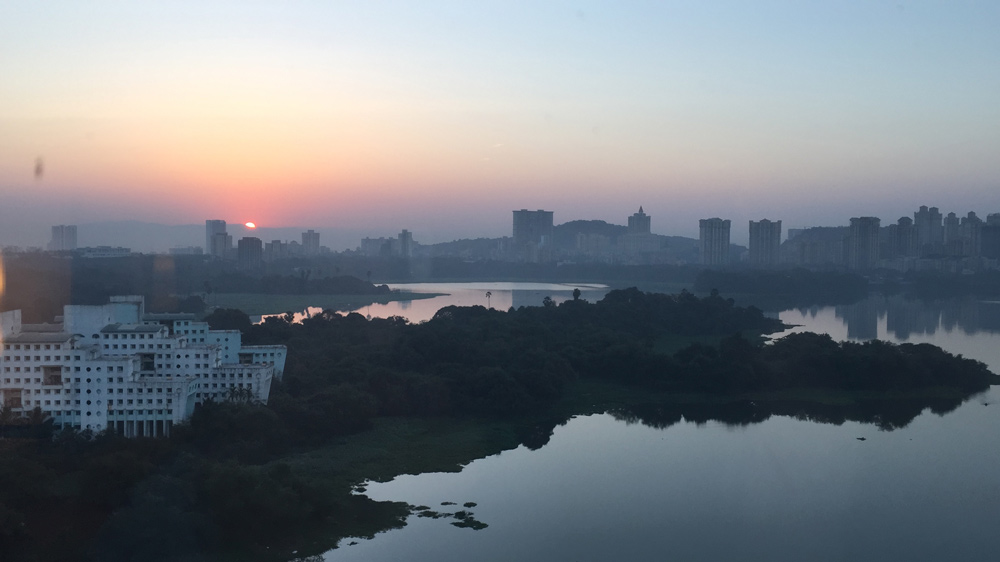 04.01.2017 - Indien - In Mumbai im Stadtteil Powai Blick vom Hotel Renaissance auf den See Powai beim Sonnenaufgang