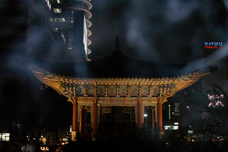 13-08-10 - South Korea - Workstay in Seoul: Small Temple at the EulJiro at night