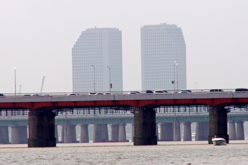 15-08-10 - South Korea - Workstay in Seoul: Twin Towers seen from Hangang Park (Ichon Riverside Park)